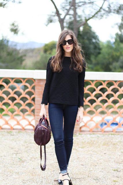 This is a relatively short post because we snapped only a few pictures after leaving a winery on the way from Bormes les Mimosas to the beach. This black and denim look is so simple and classic and perfect for traveling. I always find packing for trips excitingly challenging--how little can I pack, and what pieces will mix and match, and how many different outfits can I get out of my clothing items? Riveting stuff, people. All in all, I felt like this most recent trip to the south of France was well-packed, and that I was able to keep my outfits somewhat interesting. It helps when you have a versatile piece like this Tory Burch top that works with almost everything, but is a little different on it's own. These pictures don't show off the brocade detailing or the semi-boatneck top--and I also want to point out the slight swing/box shape. Not too shabby!