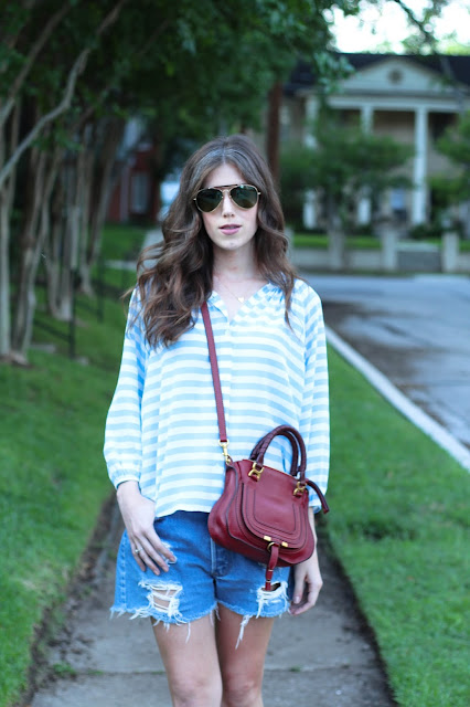 top: tucker, shorts: vintage levi, purse: chloe, sandals: zara, necklace: gorjana, sunglasses: celine